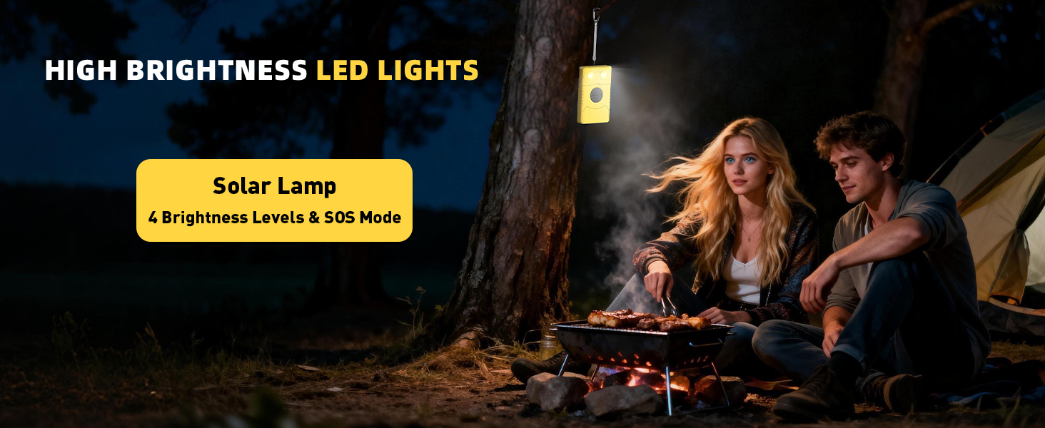 Additional designs: This solar lamp is equipped with a hook line, which can be used for chandeliers. In addition, this product has the lighting mode of multiple stalls, and also designed the SOS function.
